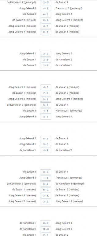 Op de volgende website kunt u het speelschema en de uitslagen bekijken: