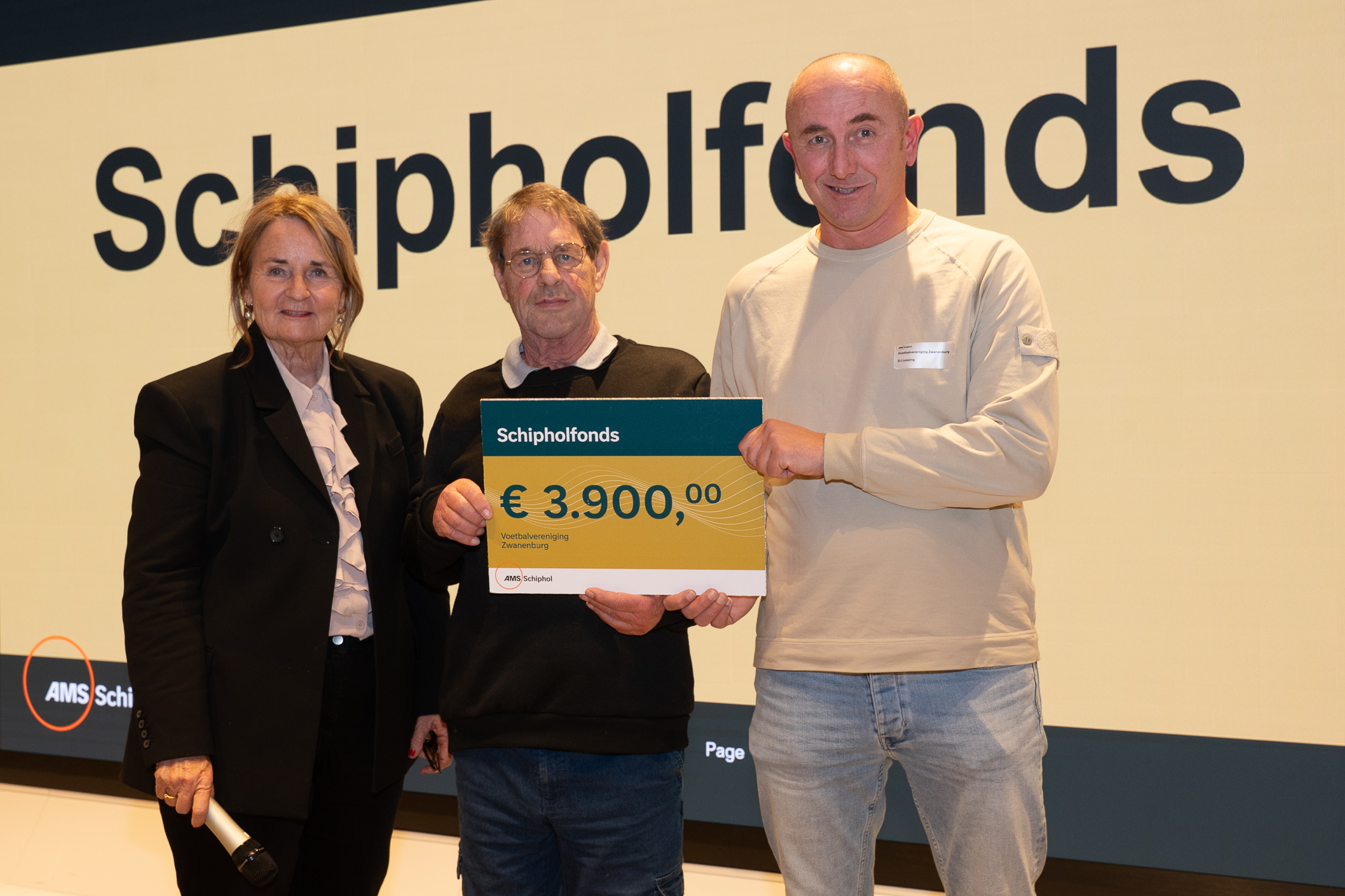 Afgelopen vrijdag hebben Rien Kruijt en Dirk Jan Lassing namens de vereniging een cheque ter waarde van € 3.900 uit handen van Mirjam Snoerwang van het Schipholfonds ontvangen. Het Schipholfonds stelt deze donatie ter beschikking voor de aanschaf van 4 verrijdbare jeugddoelen. Deze doeltjes kunnen eenvoudig verreden worden en dat scheelt én rugklachten van onze vrijwilligers en we hopen dat het materiaal langer heel blijft.