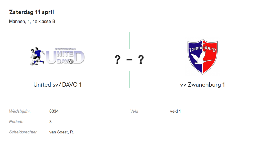 Wedstrijdverslag sv United/DAVO – vv Zwanenburg
