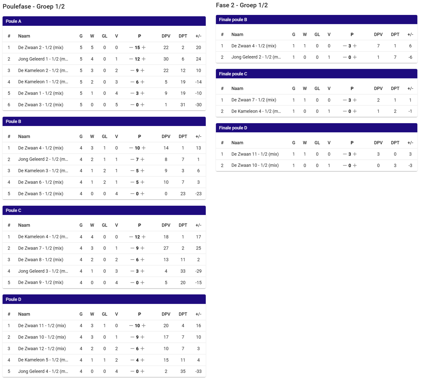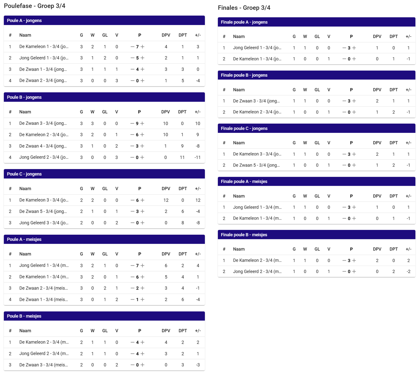 De finale van poule A (jongens) groep 7/8: De Kameleon 1 vs. De Zwaan 1 is hier te zien: