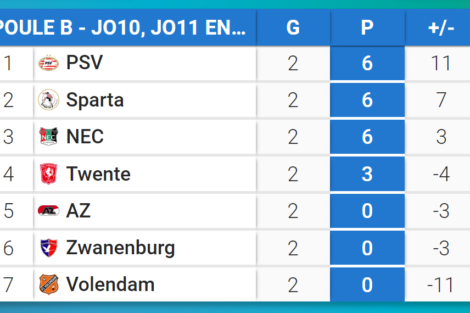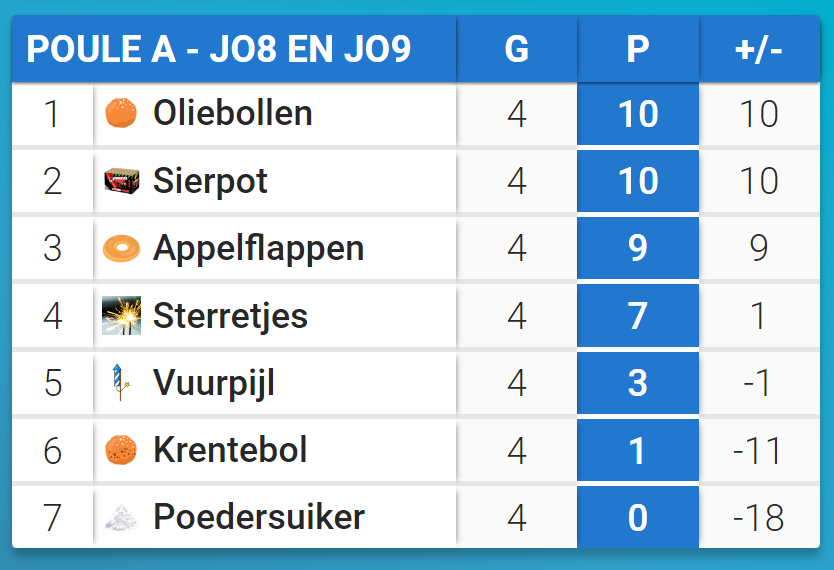 De winnaars van het Oliebollentoernooi zijn bekend! Bij de JO8/9 zijn de Oliebollen als eerste geƫindigd. Bij de JO10/11/12 heeeft PSV gewonnen. Bekijk alle uitslagen van het toernooi hier: https://www.tournify.nl/live/vvz-oliebollentoernooi