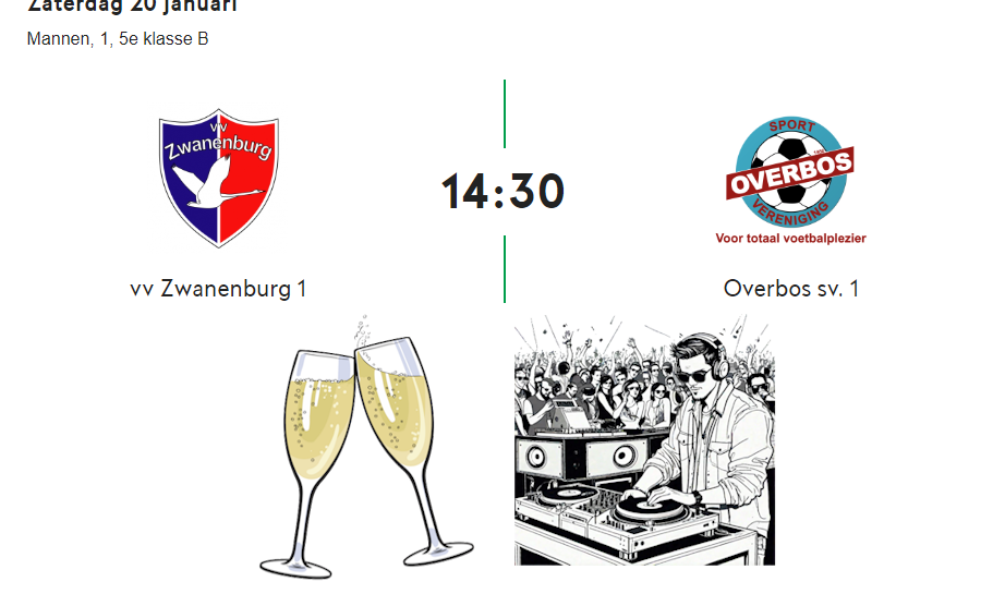 Wedstrijd zaterdag 1 & nieuwjaarsborrel met DJ
