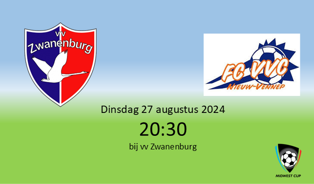 Dinsdagavond 27 augustus om 20:30 speelt de zaterdag 1 thuis voor de MidWestCup tegen FC VVC.