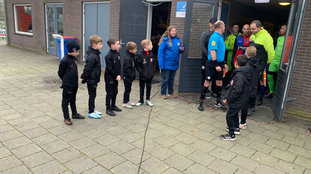 Voor deze belangrijke wedstrijd tegen koploper Blauw-Wit mochten deze jonge talenten aanwezig zijn bij de wedstrijdbespreking. Hier hebben zij ondanks hun jonge leeftijd aandachtig naar geluisterd. Voor de wedstrijd mochten ze met de spelers het veld op lopen en 2 spelers mochten de aftrap nemen.