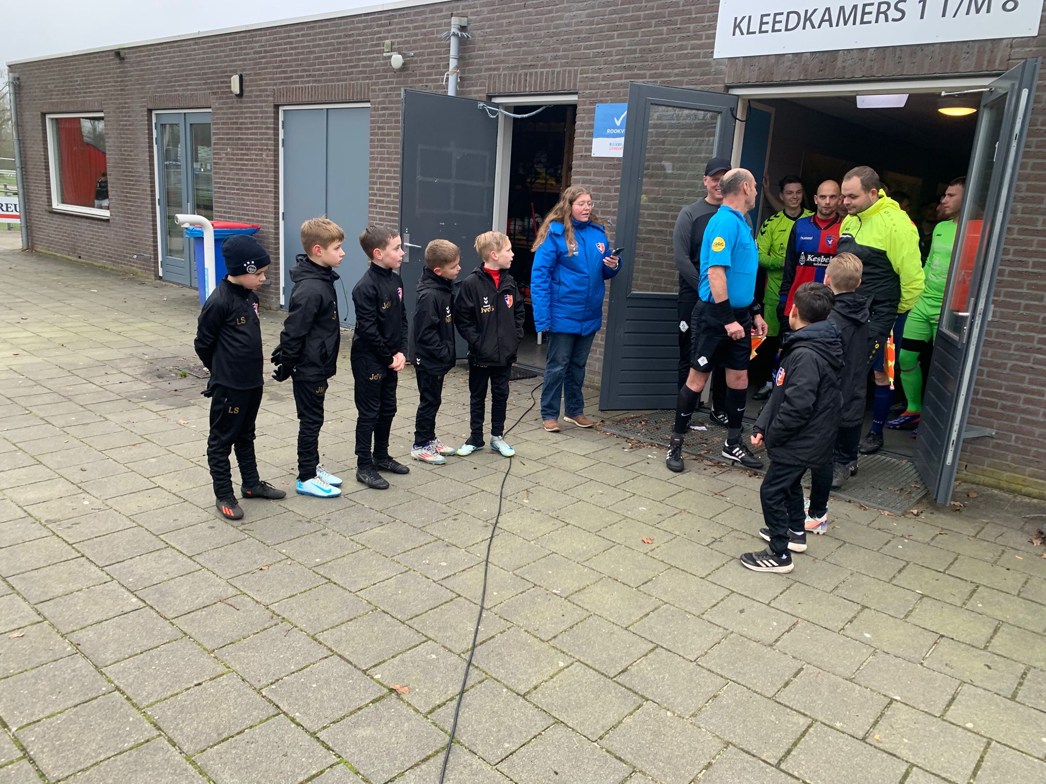 Voor deze belangrijke wedstrijd tegen koploper Blauw-Wit mochten deze jonge talenten aanwezig zijn bij de wedstrijdbespreking. Hier hebben zij ondanks hun jonge leeftijd aandachtig naar geluisterd. Voor de wedstrijd mochten ze met de spelers het veld op lopen en 2 spelers mochten de aftrap nemen.