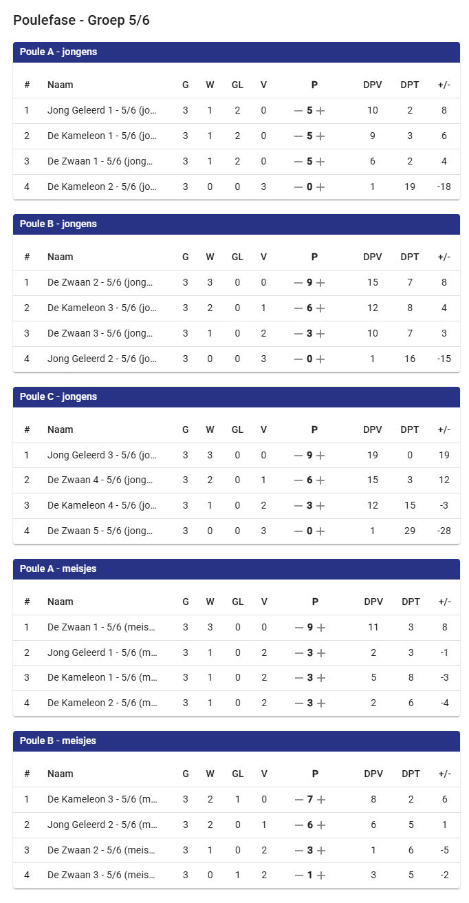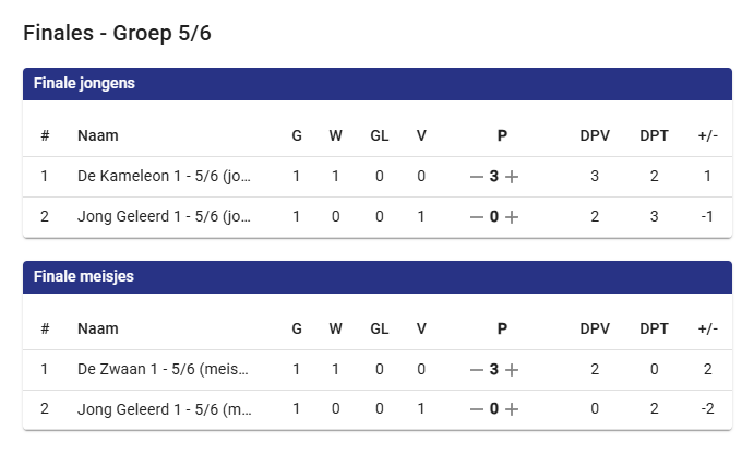 Woensdag 16 april speelden de kinderen uit groep 5 & 6 van de Kameleon, de Zwaan en Jong Geleerd hun schoolvoetbaltoernooi. De uitslag was als volgt: