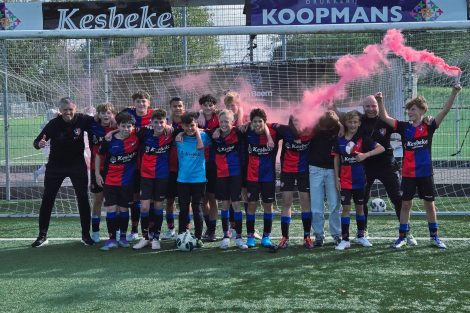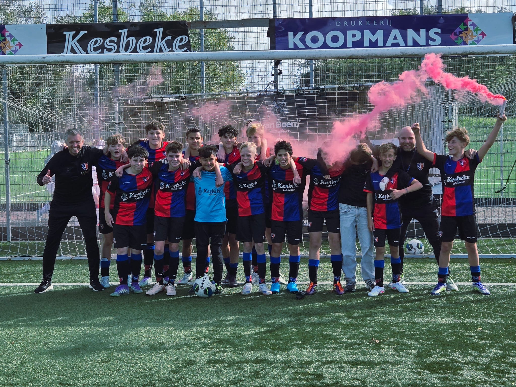 De JO14-1 won met 5-0 van HBC en wist daarmee ongeslagen kampioen te worden!