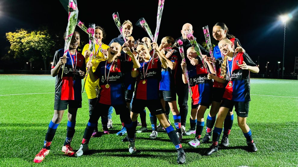 De meiden van de MO15-1 (vorig jaar MO12-1) zijn ook dit seizoen gelijk in de eerste fase kampioen geworden. In de derde klasse bleven ze ongeslagen en kregen slechts 2 doelpunten tegen. Al op 27 september was het kampioenschap binnen, maar er stond nog een inhaalwedstrijd tegen DCG op de planning. Deze werd woensdagavond ook met 5-0 gewonnen. Met een doelsaldo van +45 stromen de meiden na de herfstvakantie door naar de tweede klasse. Super gedaan meiden!!!
