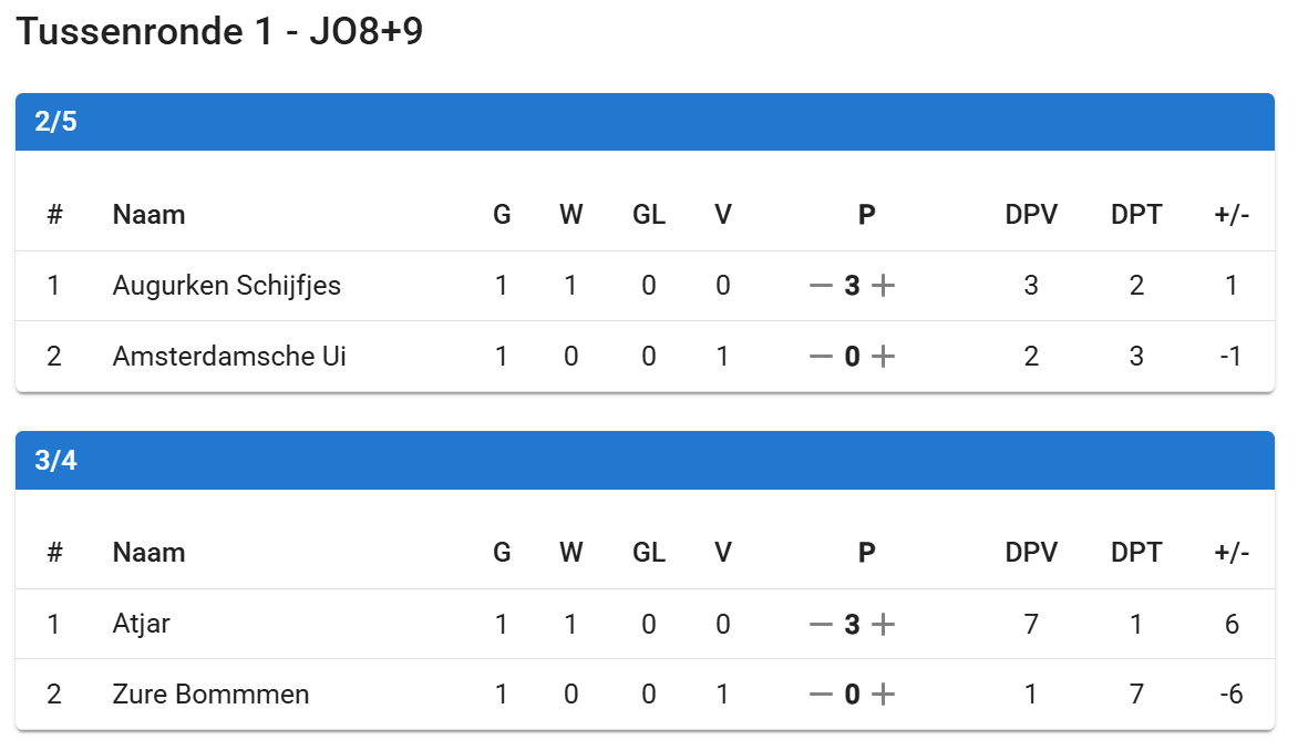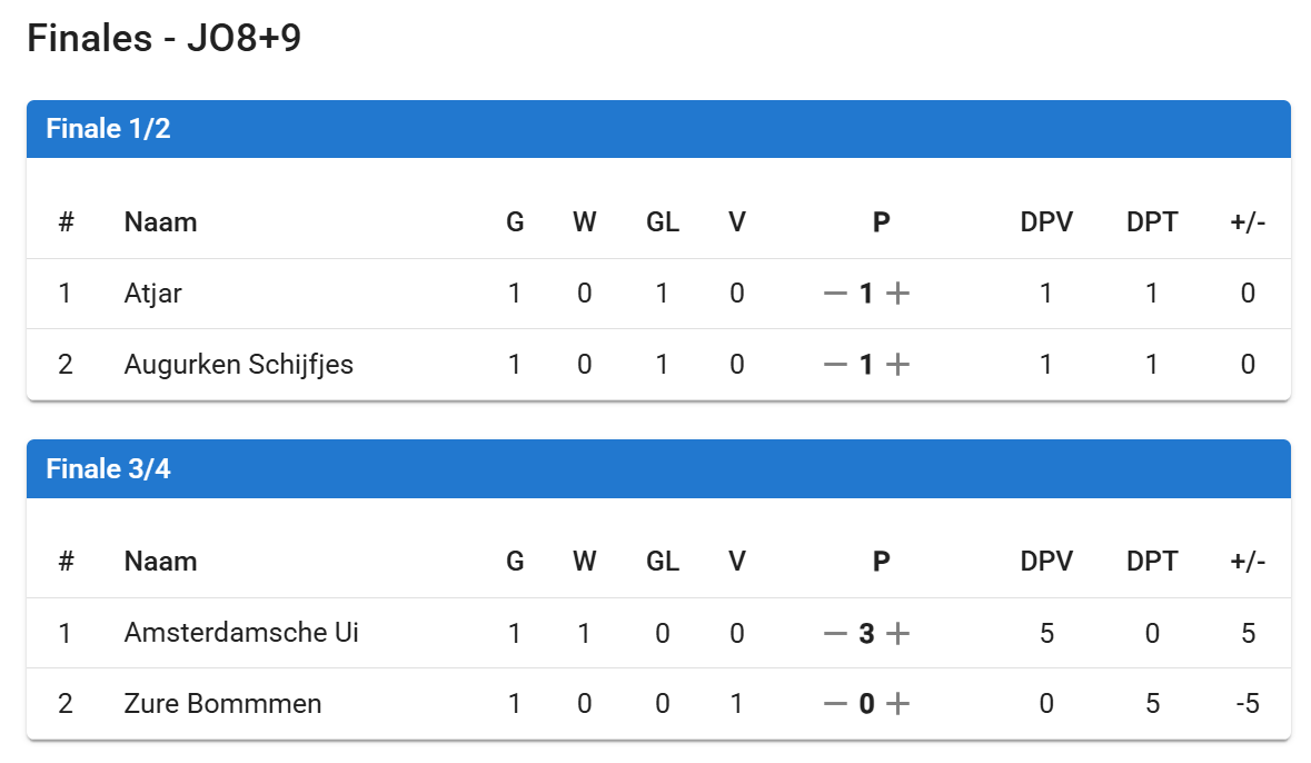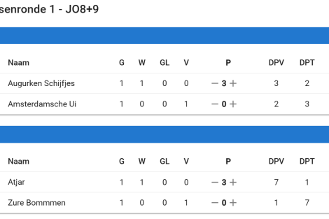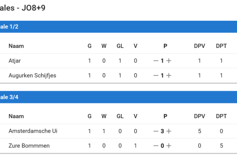 Bij de JO8 en JO9 heeft Atjar gewonnen. Na een gelijkspel in de finale (1-1), wonnen zij met penalty’s van de Augurken Schijfjes.