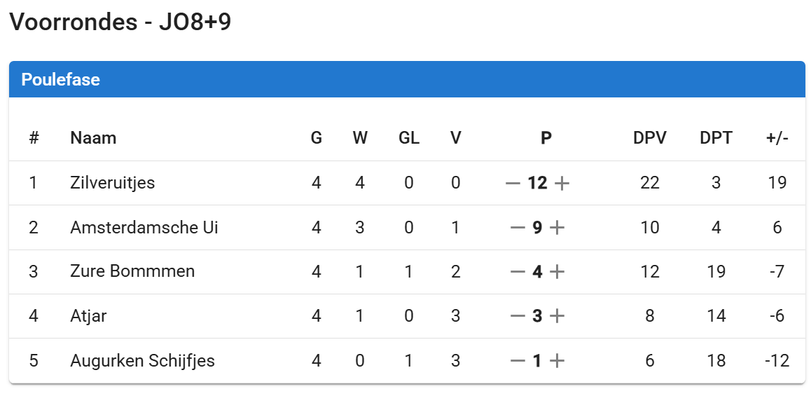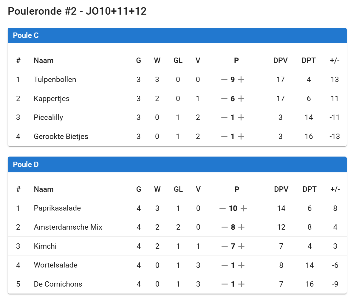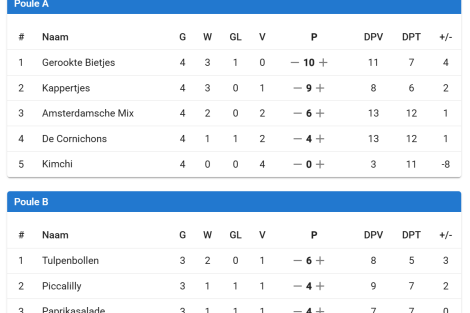 Bij de oudere groep (JO10/11/12) zijn de Tulpenbollen als eerste geëindigd. Nogmaals van harte gefeliciteerd!