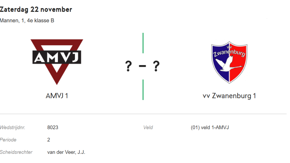 Zaterdag stond de wedstrijd tussen AMVJ en vv Zwanenburg op het programma.
