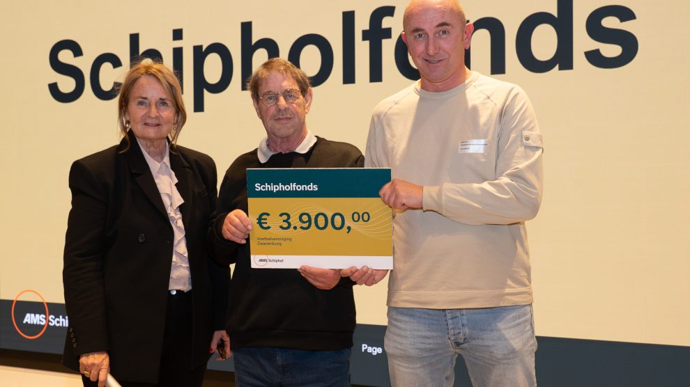 Afgelopen vrijdag hebben Rien Kruijt en Dirk Jan Lassing namens de vereniging een cheque ter waarde van € 3.900 uit handen van Mirjam Snoerwang van het Schipholfonds ontvangen. Het Schipholfonds stelt deze donatie ter beschikking voor de aanschaf van 4 verrijdbare jeugddoelen. Deze doeltjes kunnen eenvoudig verreden worden en dat scheelt én rugklachten van onze vrijwilligers en we hopen dat het materiaal langer heel blijft.