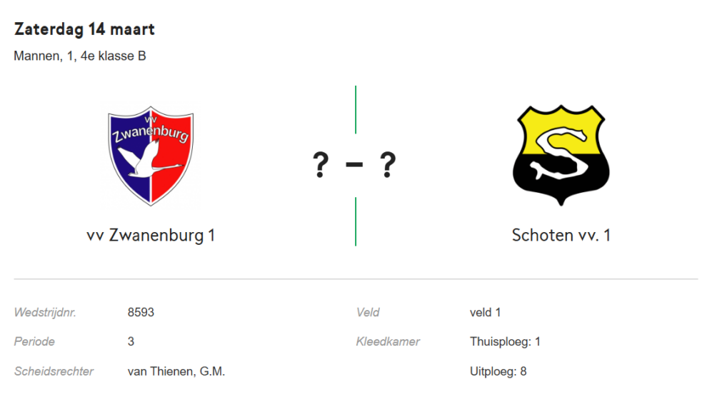 Wedstrijdverslag vv Zwanenburg – vv Schoten