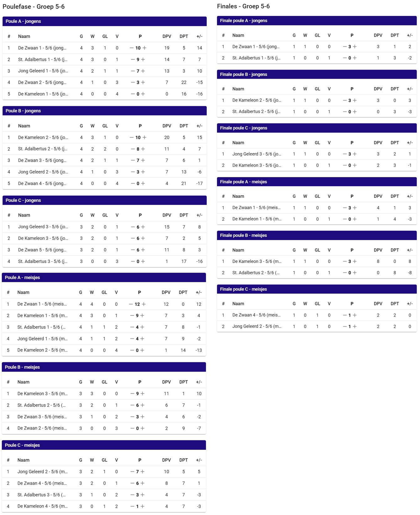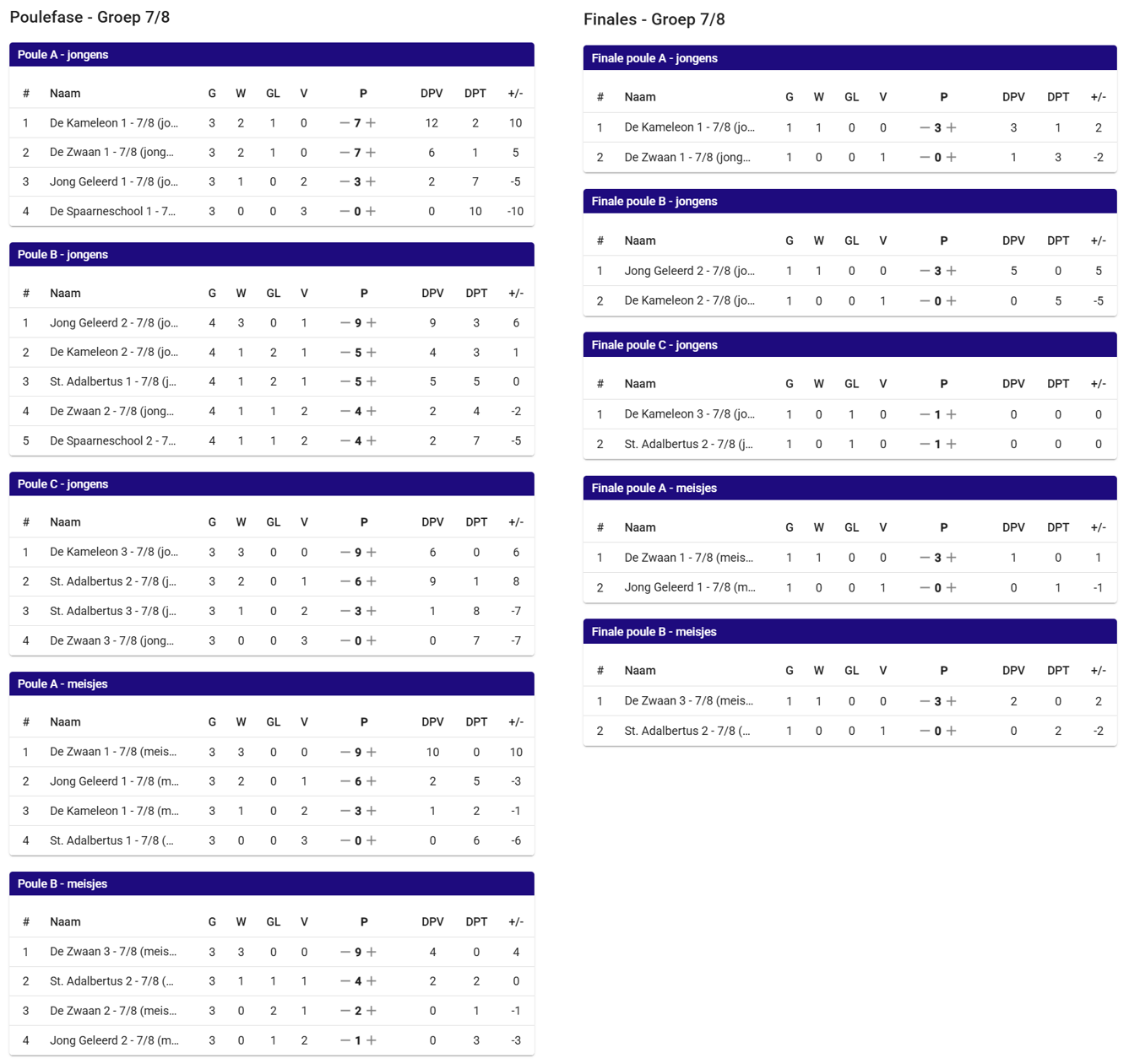 De finale van poule A (jongens) groep 7/8: De Kameleon 1 vs. De Zwaan 1 is hier te zien: