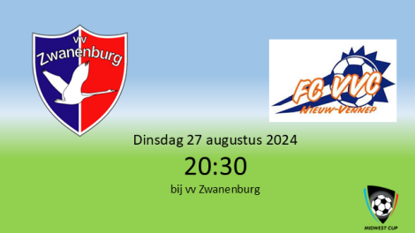Dinsdagavond 27 augustus om 20:30 speelt de zaterdag 1 thuis voor de MidWestCup tegen FC VVC.