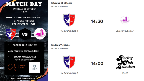 Het aankomende weekend spelen de zaterdag 1 en de zondag 1 beiden een thuiswedstrijd. Het zal een weekend vol voetbal, live muziek en eten worden! Op zaterdag is er een...