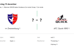 Zaterdag 13 December kwamen de heren van AFC Quick 1890 naar sportpark Zwanenburg voor de knock out wedstrijd in de tweede ronde van de KNVB-beker. De...